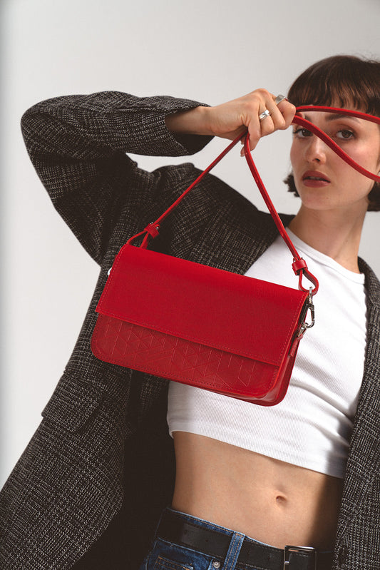 Leder Schultertasche - Curie (Rot)