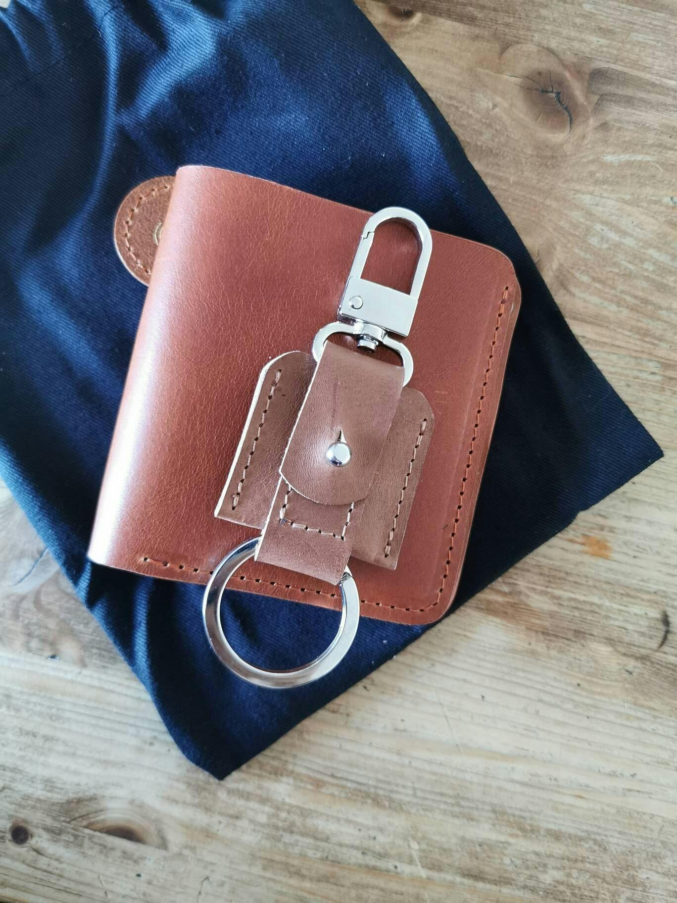 Leather AirTag keychain with a convenient snap hook and keyring attachment.