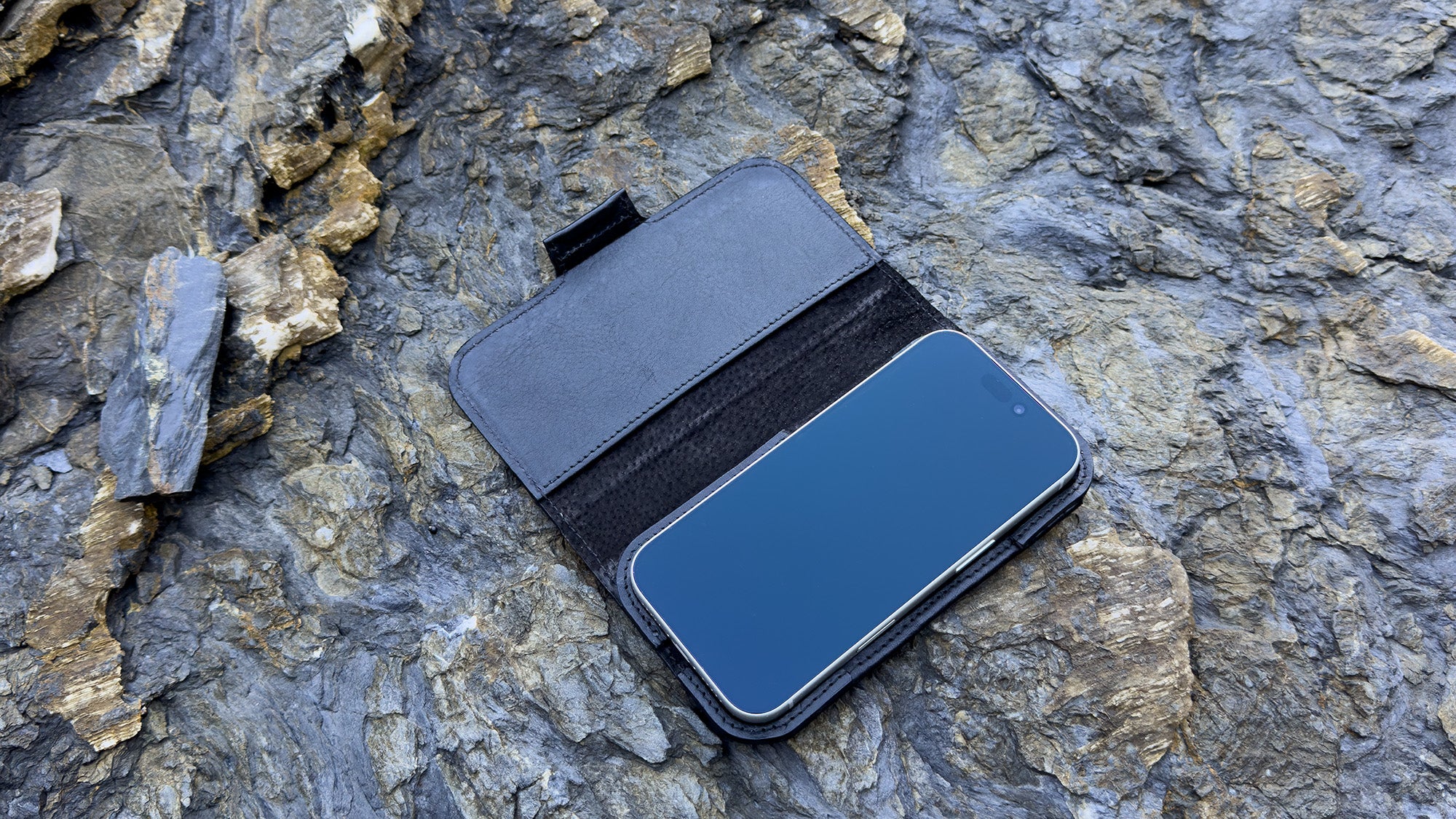 - Leather frame that protects edges of the iPhone and ensures secure MagSafe grip.